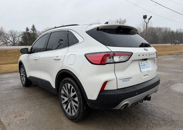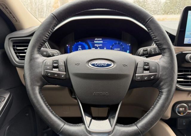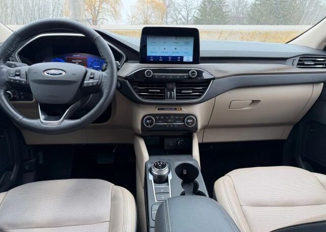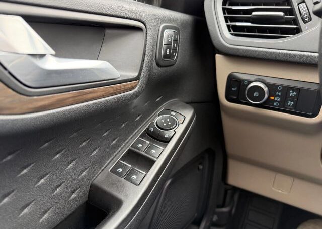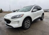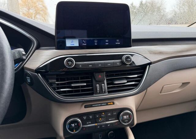 The 2020 Ford Escape is a modern and sleek compact SUV with plenty of seats for passengers. It features a 2.0L engine size and comes equipped with advanced features such as seat heating, Bluetooth connectivity, Apple Carplay/Android Auto, navigation system, leather seats, cruise control, and power seats. This vehicle is not only stylish but also packed with safety features including driver and passenger airbags, anti-lock brakes, traction control, and side airbags for added protection on the road.