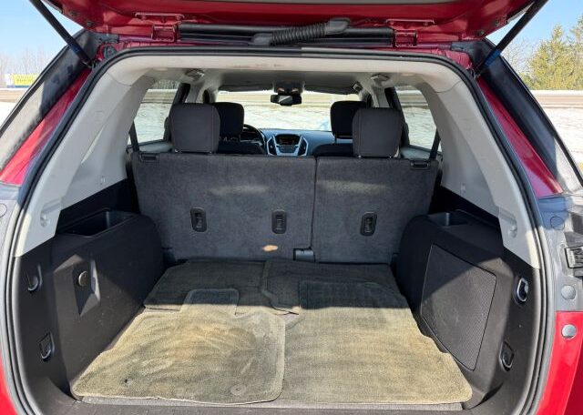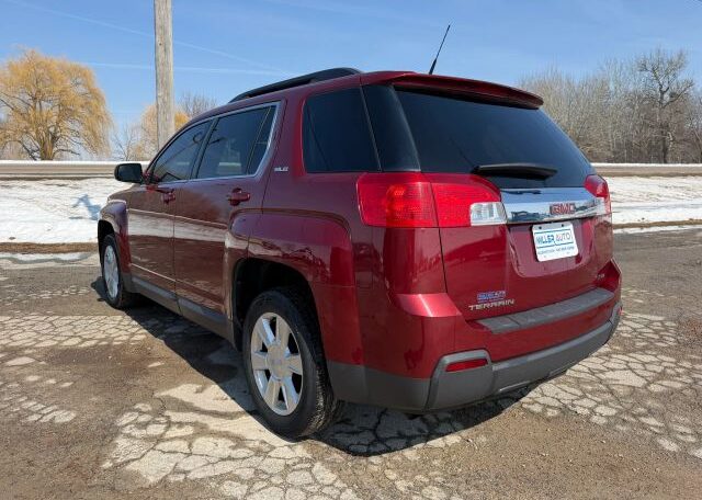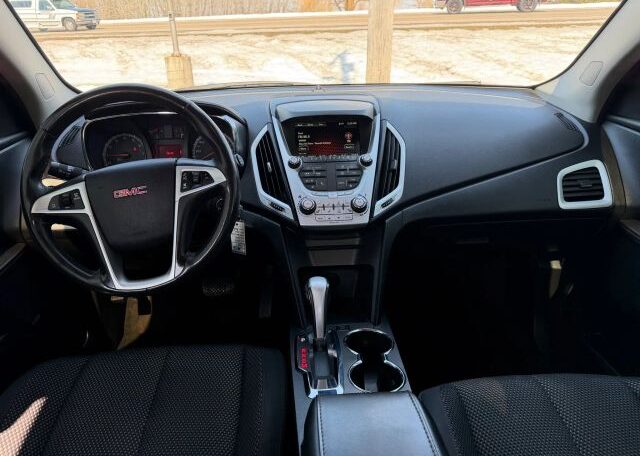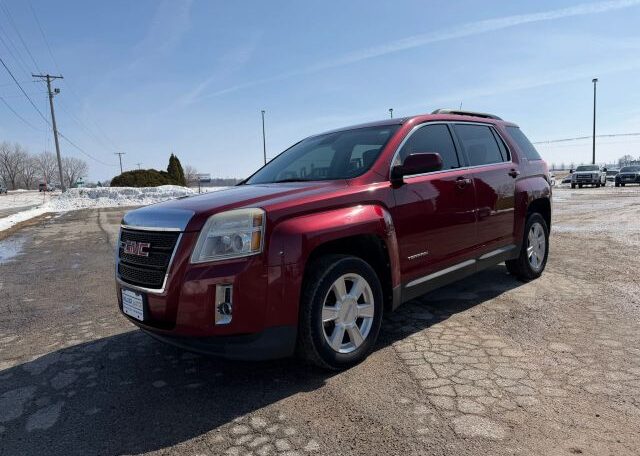 The 2012 GMC Terrain is a red SUV with a sleek black interior. This vehicle has a 2.4L engine, seating for 5 passengers, and comes equipped with features like AM/FM stereo, air conditioning, cruise control, and power steering. In terms of safety, it includes driver airbag, fog lights, anti-lock brakes, back seat safety belts, traction control, and side airbags for added protection on the road. The GMC Terrain is a reliable and stylish option for those in the market for a versatile and safe vehicle.